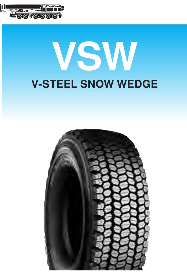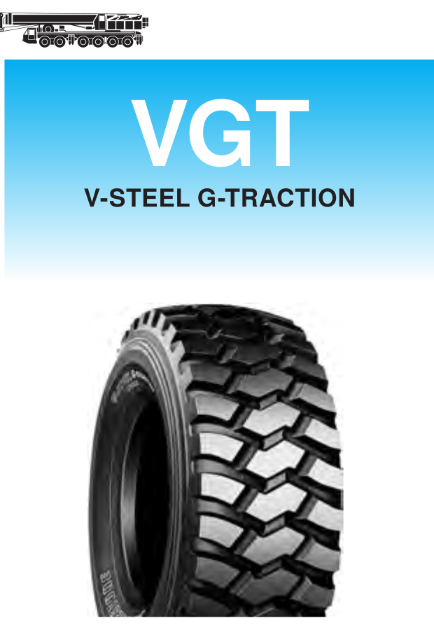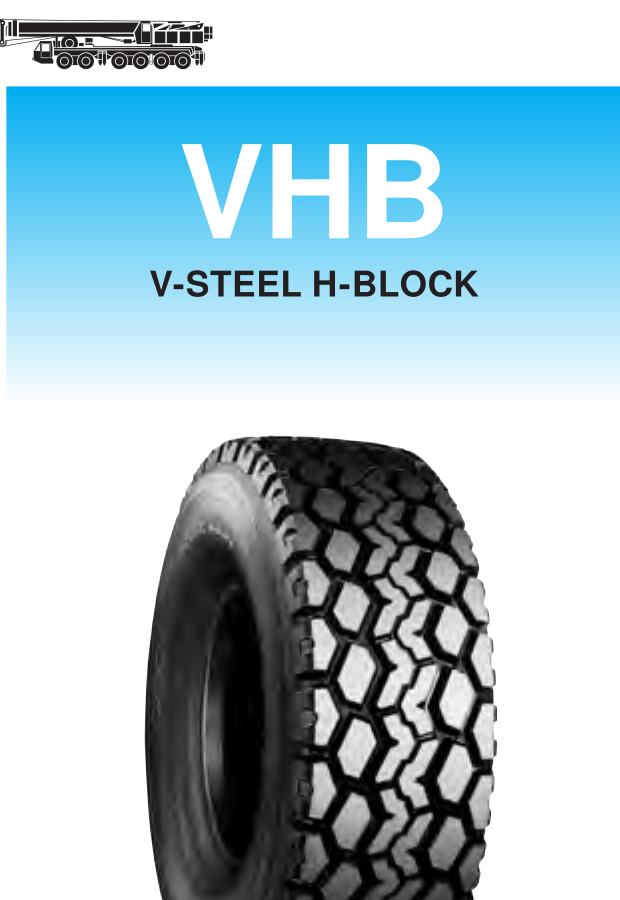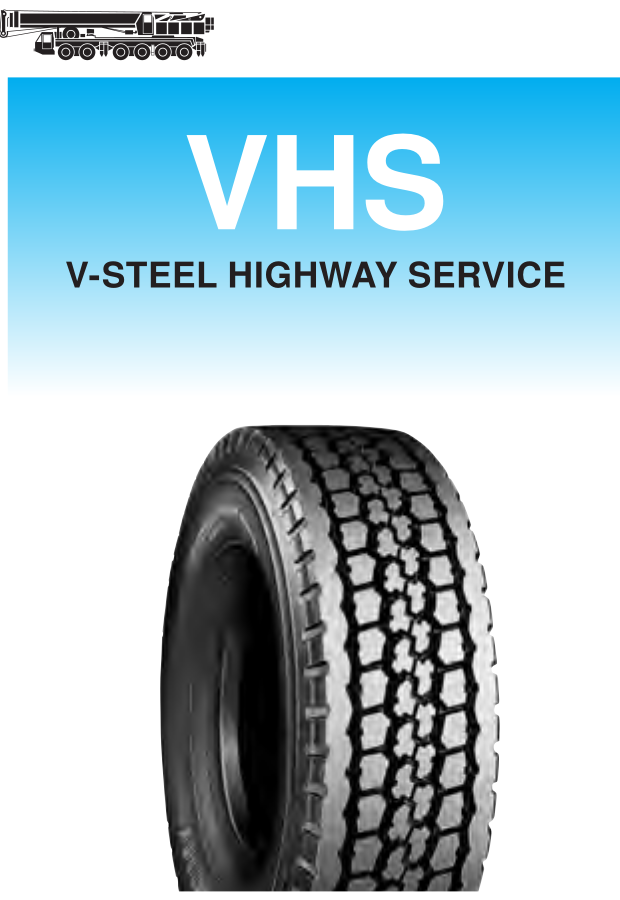 Newly developed technology assures excellent performance, especially for mobile crane service (on-road conditions). New tread rubber achieves extra-long life and ideal tread pattern (closed shoulder, variable pitches) reduces noise level. Suitable for all-terrain cranes. DOT approved.